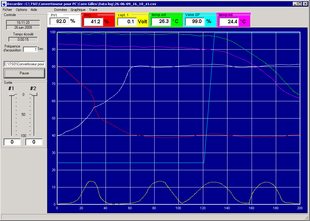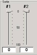 Ces sorties sont contrôlées par deux gradateurs verticaux sur la page principale du logiciel.
